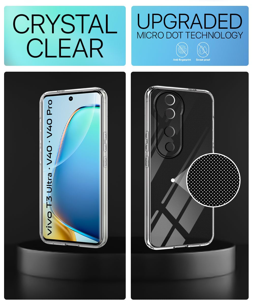 Transparent Back Cover Case for Vivo V40 | V40 Pro 5G | T3 Ultra 5G | Raised Bumps for Full Device & Camera Protection Shockproof TPU Silicone Back Case Mobile Cover Transparent is designed with premium quality materials to provide superior protection, durability, and style for your smartphone. It offers a perfect balance between functionality and aesthetics, ensuring your device stays safe from scratches, impacts, and daily wear. Engineered with precision, it features accurate cutouts for ports, buttons, and cameras, making it highly convenient for everyday use. The slim and lightweight design ensures that your device retains its sleek profile without adding unnecessary bulk. Whether it is a nano film tempered glass, a hybrid back case, or a camera lens protector, each product is created with attention to detail to enhance the user experience and extend the life of your smartphone. The material used ensures longlasting clarity, antiscratch performance, and resistance against fingerprints and smudges. It is the ideal choice for users who want both style and substance in their smartphone accessories. This product from reflects innovation and craftsmanship, making it a reliable accessory that safeguards your investment while maintaining modern appeal.