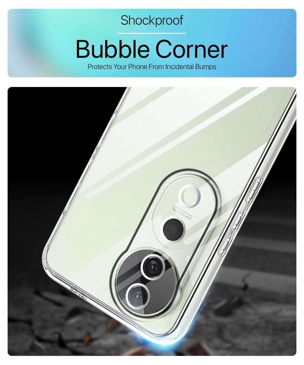 Transparent Back Cover Case for Vivo V40 | V40 Pro 5G | T3 Ultra 5G | Raised Bumps for Full Device & Camera Protection Shockproof TPU Silicone Back Case Mobile Cover Transparent