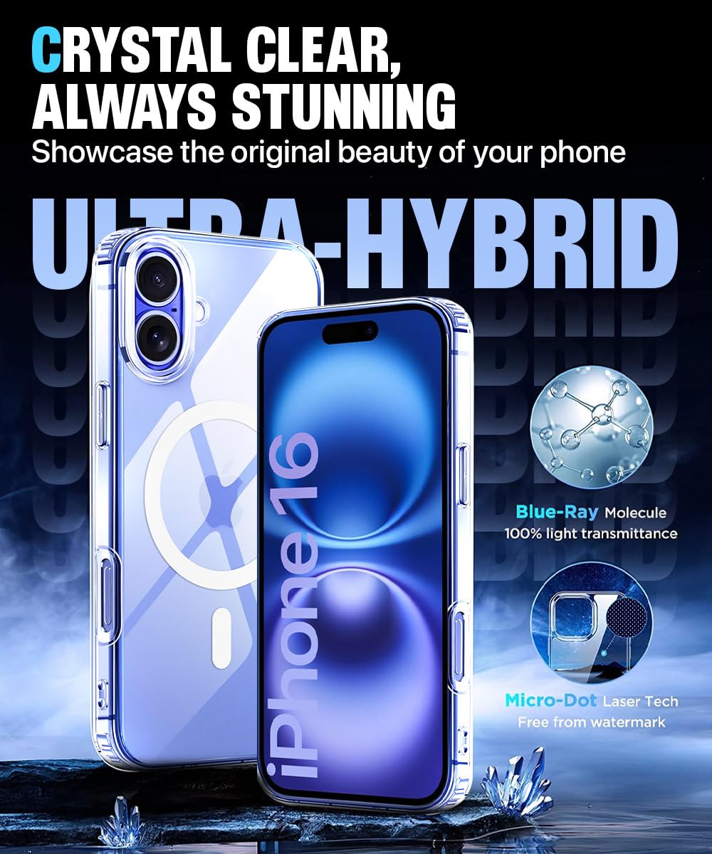 Ultra-Hybrid Back Case Cover for iPhone 16 Compatible with MagSafe | Sleek Hard Crystal Clear Back | Drop & Camera Protection | Shockproof Mobile Case for iPhone 16 (PC & TPU, Transparent)