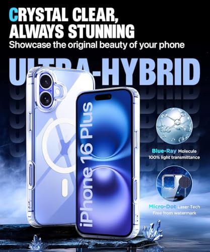Ultra-Hybrid Back Case Cover for iPhone 16 Plus | Compatible with MagSafe | Drop and Camera Protection | Shock Proof Crystal Clear Mobile Back Case (PC+TPU, Transparent)