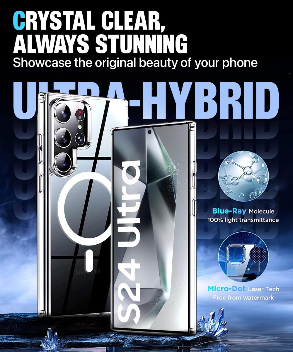 The Ultra-Hybrid Back Case Cover for Samsung Galaxy S24 Ultra 5G | Compatible with MagSafe | Drop and Camera Protection | Shock Proof Crystal Clear Mobile Back Case (PC+TPU, Transparent) is designed with premium quality materials to provide superior protection, durability, and style for your smartphone. It offers a perfect balance between functionality and aesthetics, ensuring your device stays safe from scratches, impacts, and daily wear. Engineered with precision, it features accurate cutouts for ports, buttons, and cameras, making it highly convenient for everyday use. The slim and lightweight design ensures that your device retains its sleek profile without adding unnecessary bulk. Whether it is a nano film tempered glass, a hybrid back case, or a camera lens protector, each product is created with attention to detail to enhance the user experience and extend the life of your smartphone. The material used ensures long-lasting clarity, anti-scratch performance, and resistance against fingerprints and smudges. It is the ideal choice for users who want both style and substance in their smartphone accessories. This product from reflects innovation and craftsmanship, making it a reliable accessory that safeguards your investment while maintaining modern appeal.