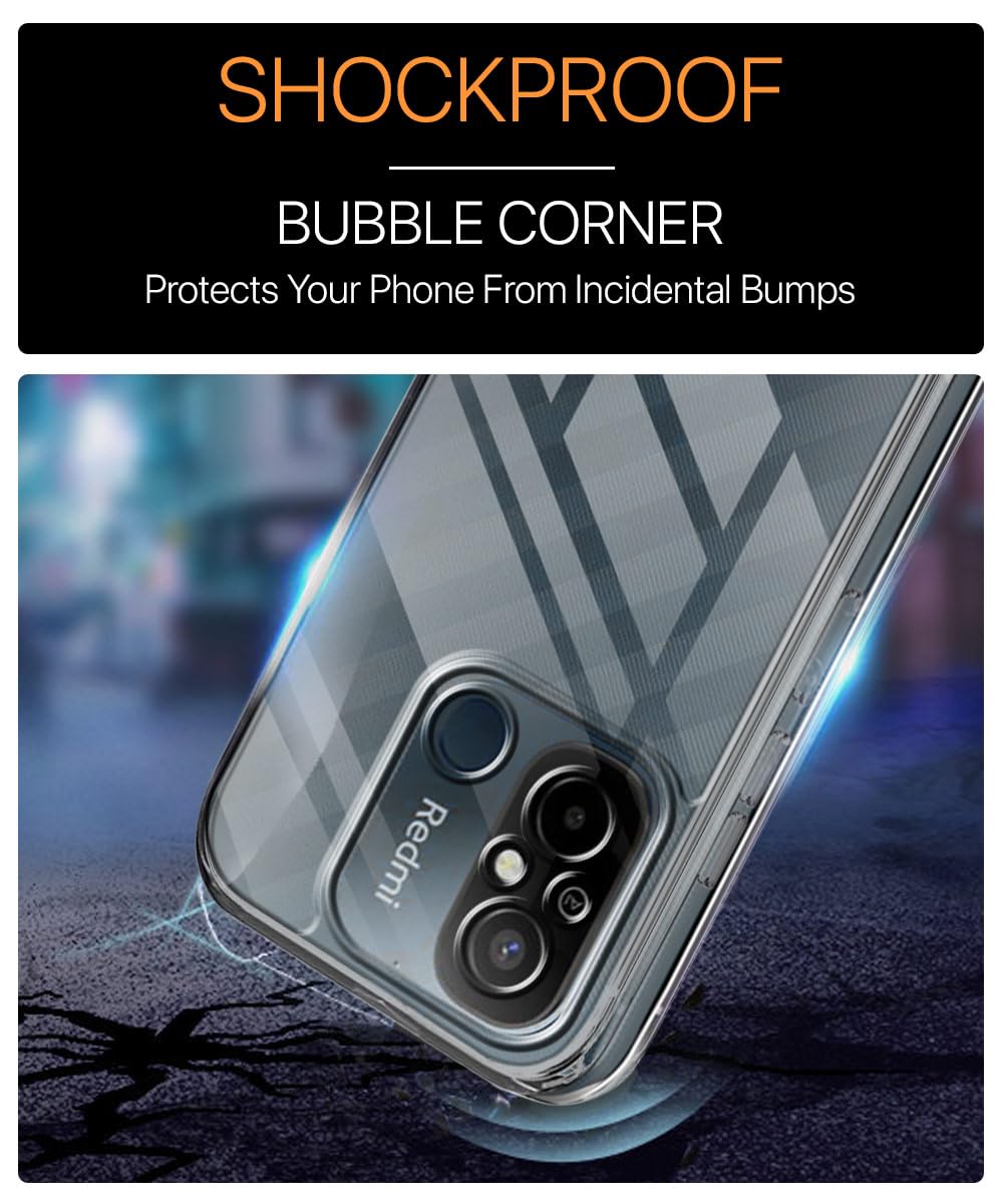 Ultra-Hybrid Clear Back Case Cover Designed for Redmi 12C | Poco C55 | Sleek Hard Back | Non-Yellowing | Cushion Edge Technology Shockproof Drop & Camera Protection Bump Transparent