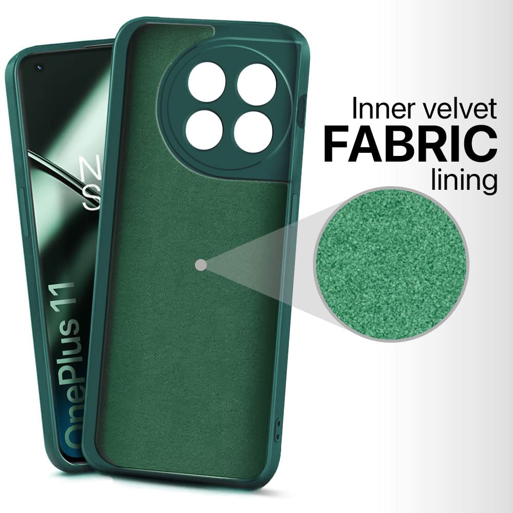 Ultra Slim Soft Rubberised Back Cover Case for 1+ OnePlus 11 5G | Inner Velvet Fabric Lining | Matte Silicone Flexible Camera Protection Back Cover ? Green
