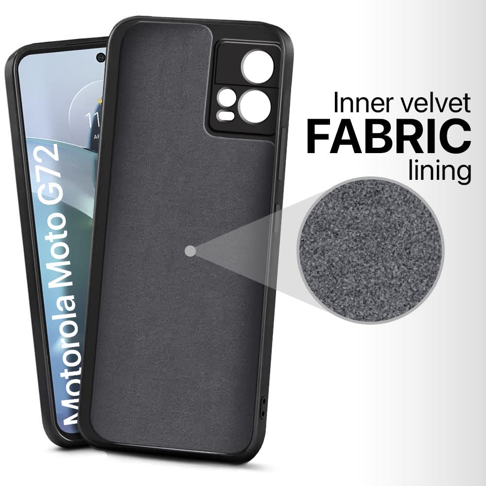 Ultra Slim Soft Rubberised Back Cover Case for Motorola Moto G72 | Inner Velvet Fabric Lining | Matte Silicone Flexible Camera Protection Back Cover – Black