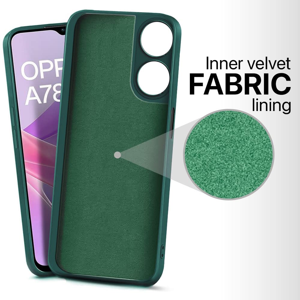 Ultra Slim Soft Rubberised Back Cover Case for Oppo A78 5G | Inner Velvet Fabric Lining | Matte Silicone Flexible Camera Protection Back Cover ? Green