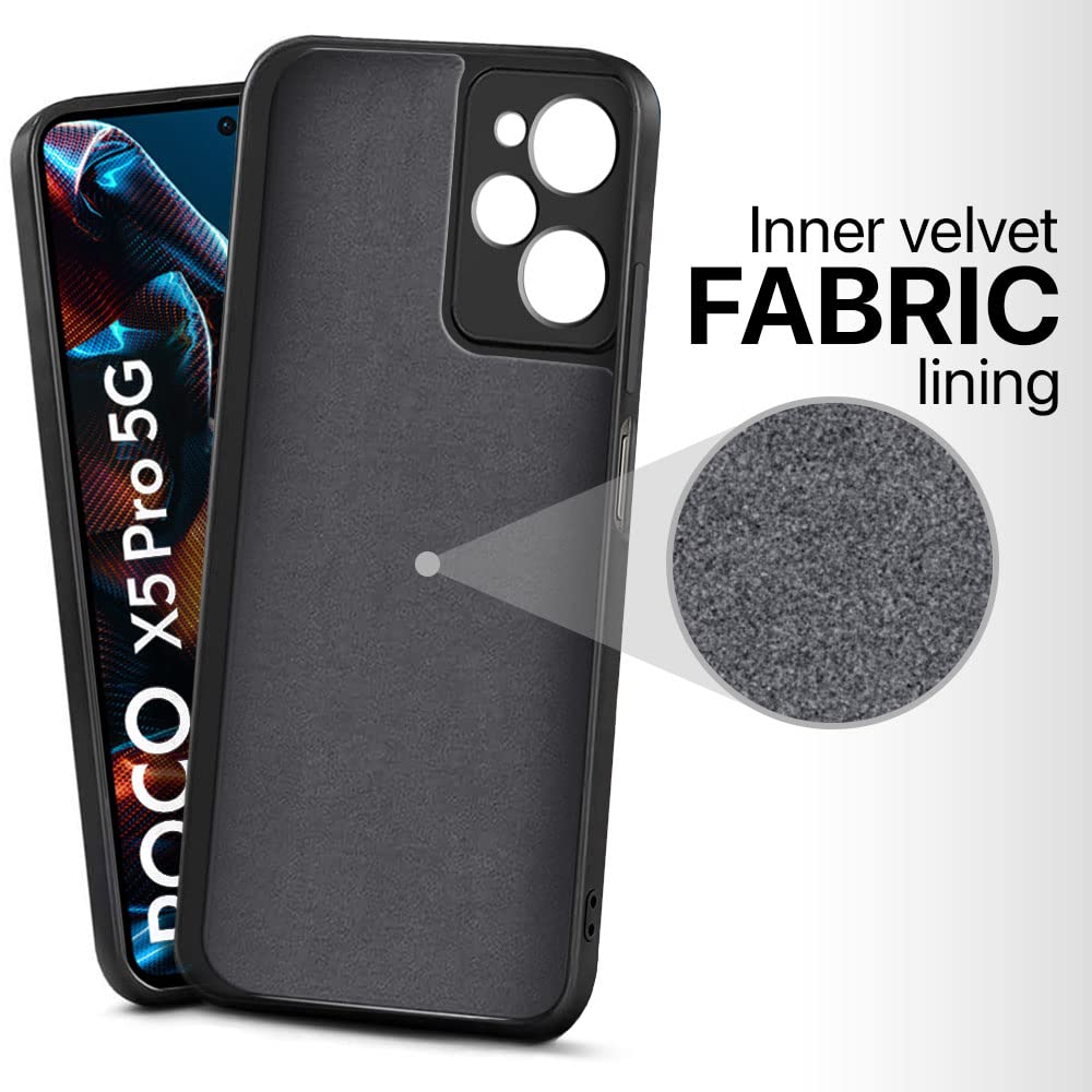 Ultra Slim Soft Rubberised Back Cover Case for Poco X5 Pro 5G | Inner Velvet Fabric Lining | Matte Silicone Flexible Camera Protection Back Cover ? Black