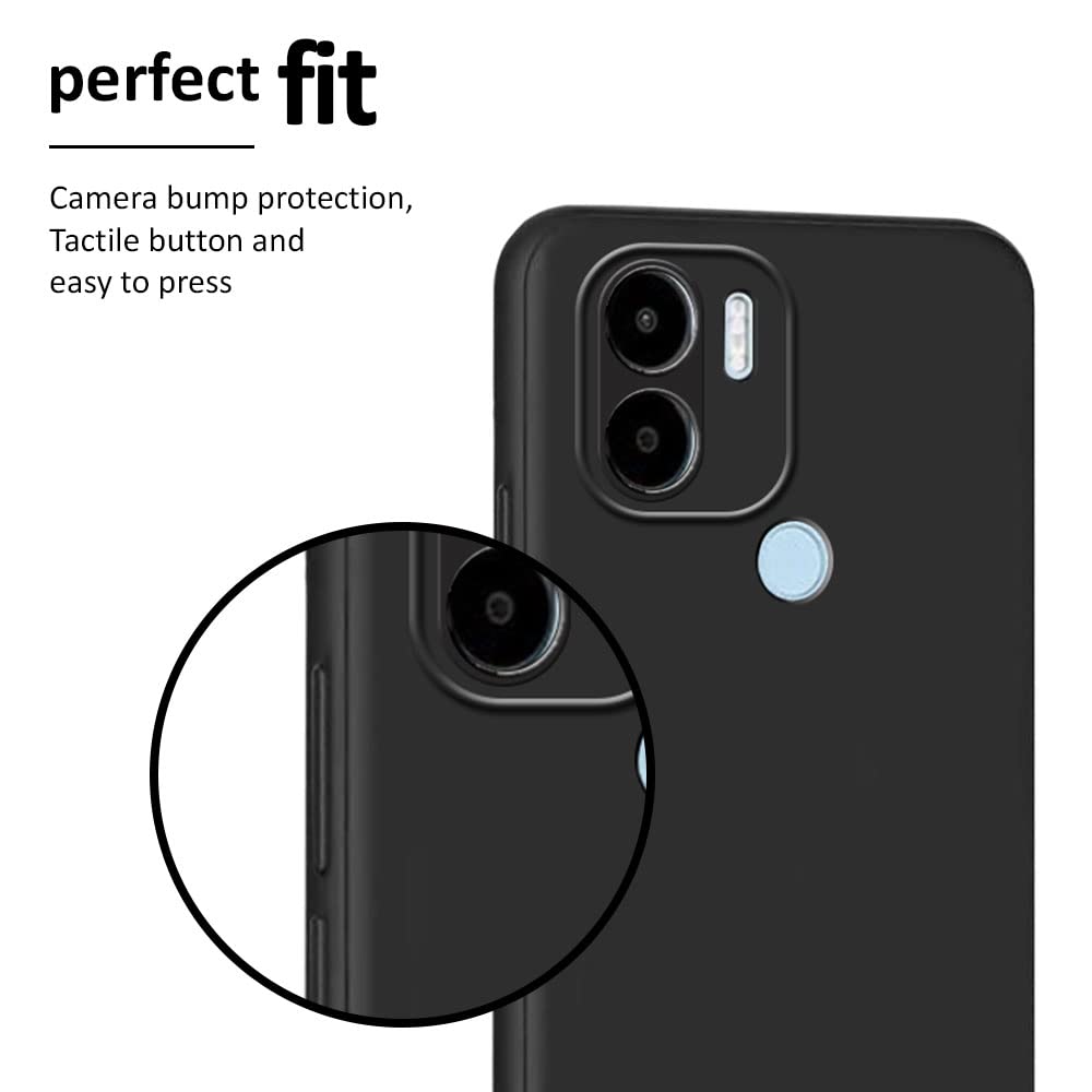 Ultra Slim Soft Rubberised Back Cover Case for Redmi A2 Plus | Redmi A1 Plus | Poco C50 | Poco C51 | Inner Velvet Fabric Lining | Matte Silicone Flexible Camera Protection – Black