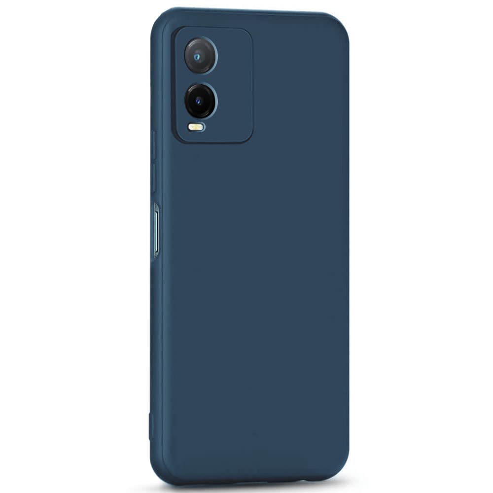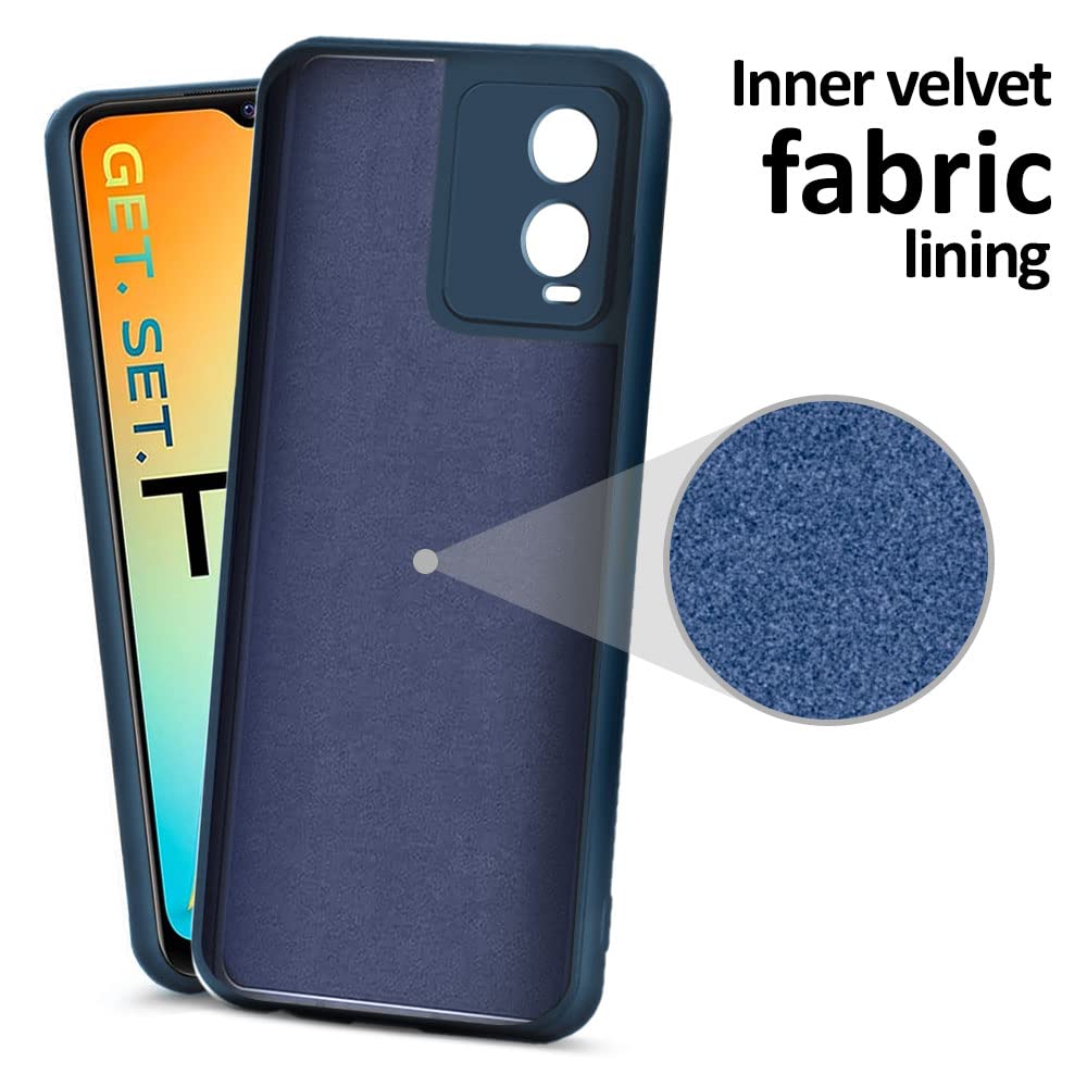 Ultra Slim Soft Rubberised Back Cover Case for Vivo T1X | Inner Velvet Fabric Lining | Matte Silicone Flexible Camera Protection Back Cover – Blue