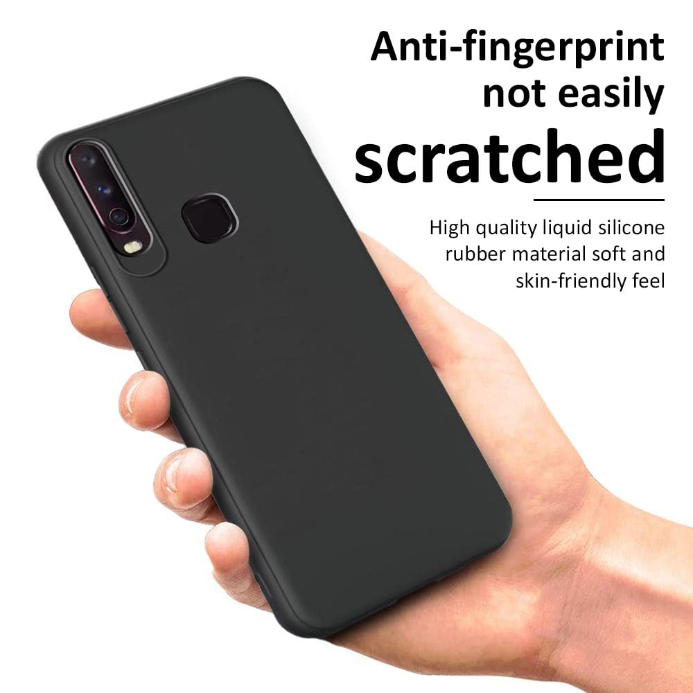 Ultra Slim Soft Rubberised Back Cover Case for Vivo Y12 | Y15 | Y17 | U10 | Inner Velvet Fabric Lining | Matte Silicone Flexible Camera Protection Back Cover Black