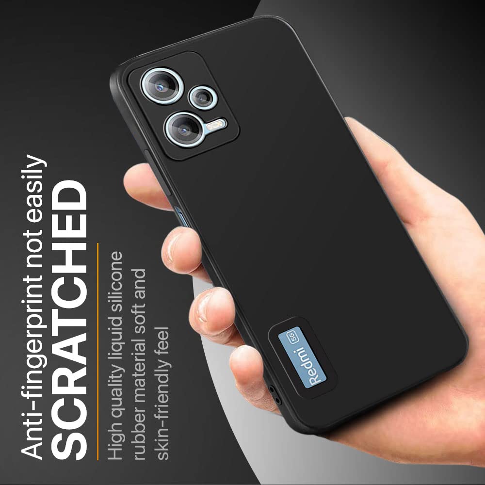 Ultra Slim Soft Rubberised Back Cover Case for Xiaomi Redmi Note 12 Pro Plus 5G | Inner Velvet Fabric Lining | Matte Silicone Flexible Camera Protection Back Case – Black