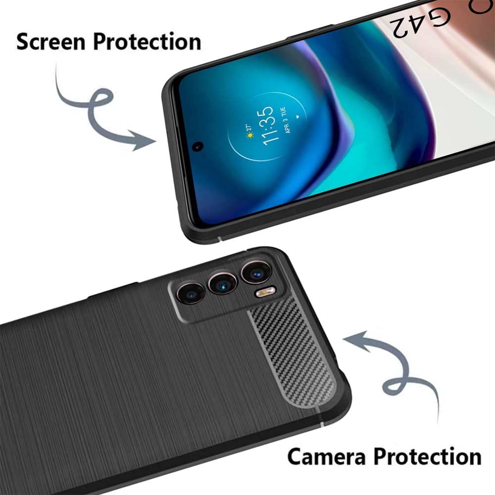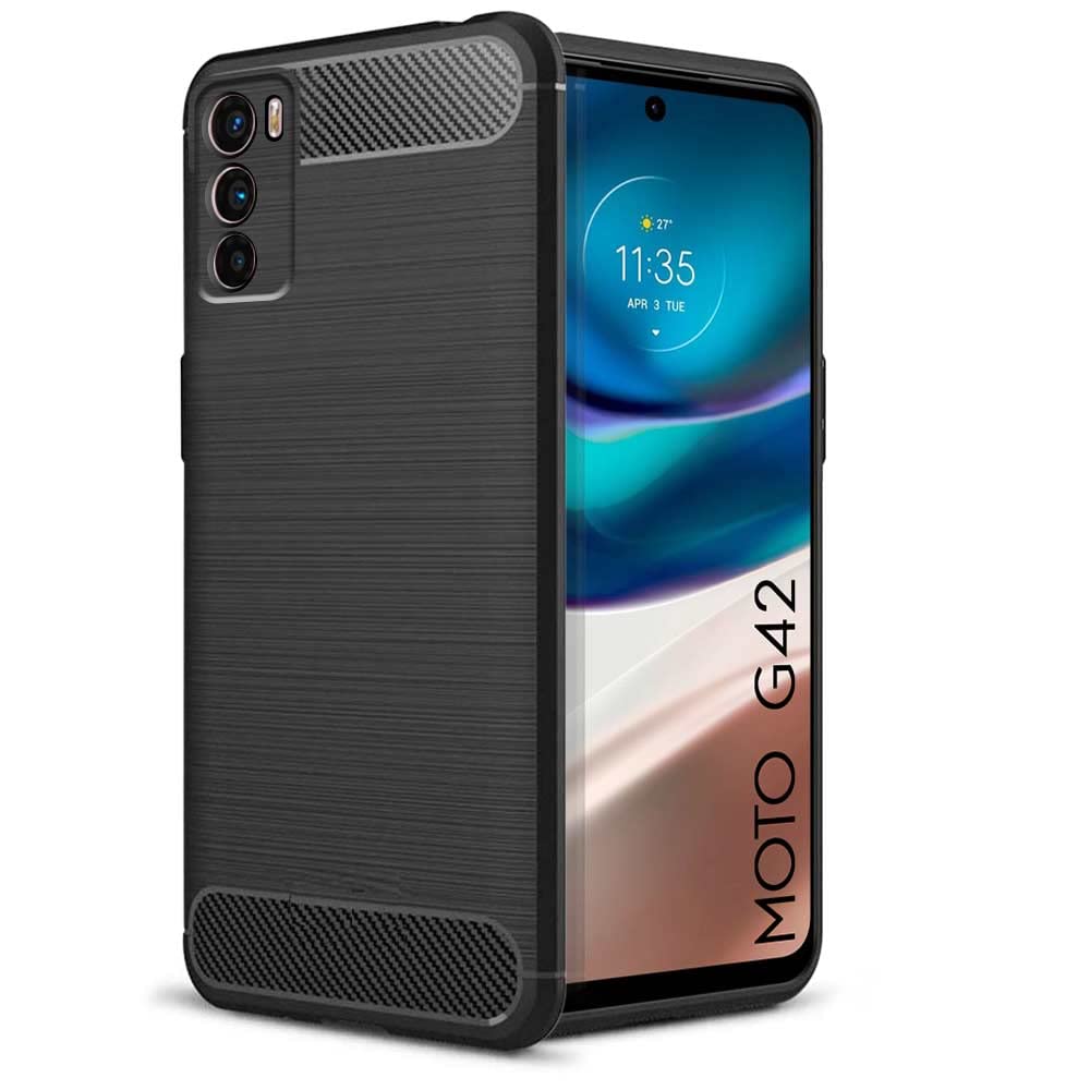 Ultra Slim Soft Rubberised Back Cover for Moto G42 5G Ultra Slim Soft Rubberised Back Cover | Shock Proof Brushed Carbon Fibre Texture Silicone Flexible Camera Protection Back Case – Black