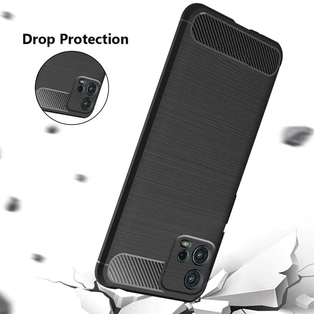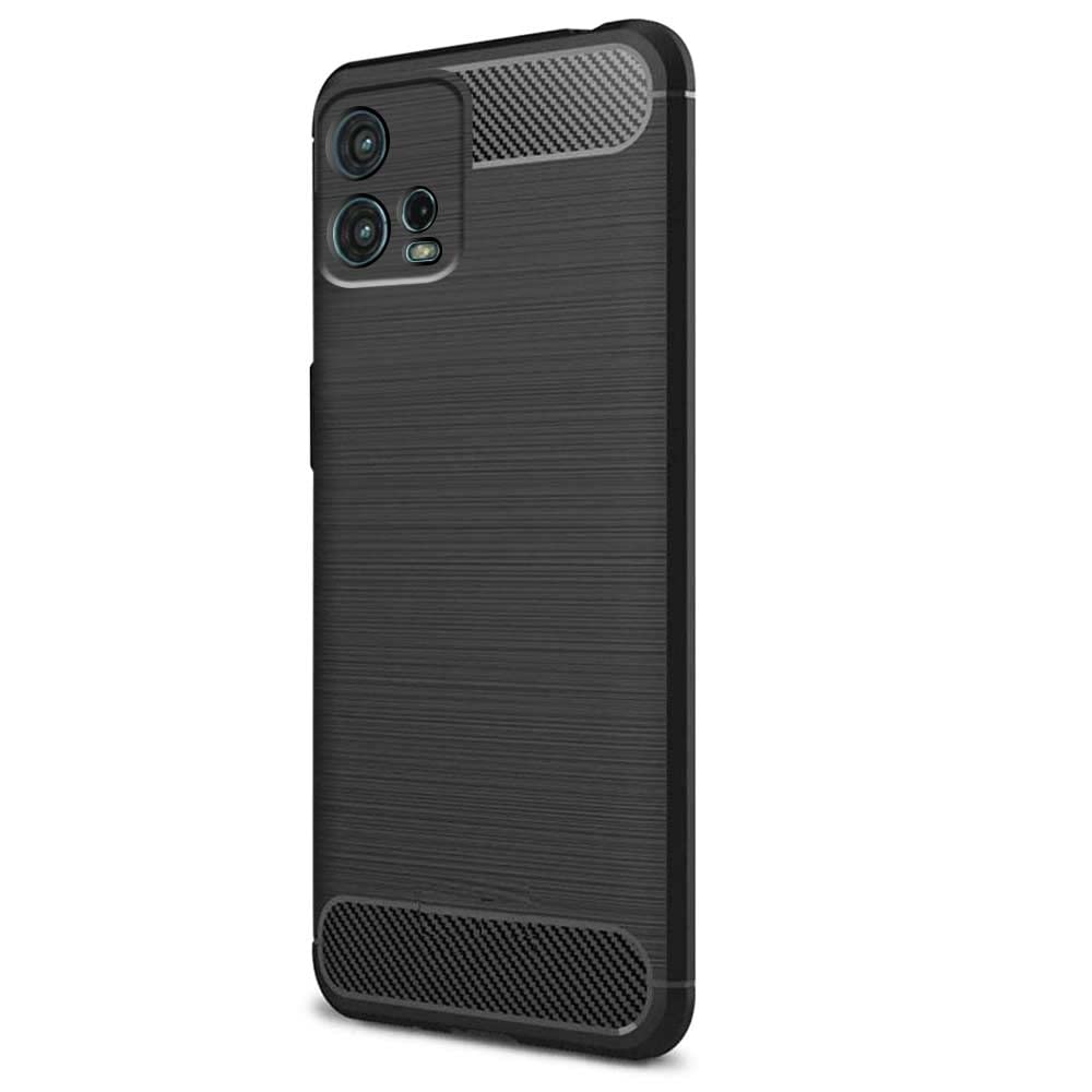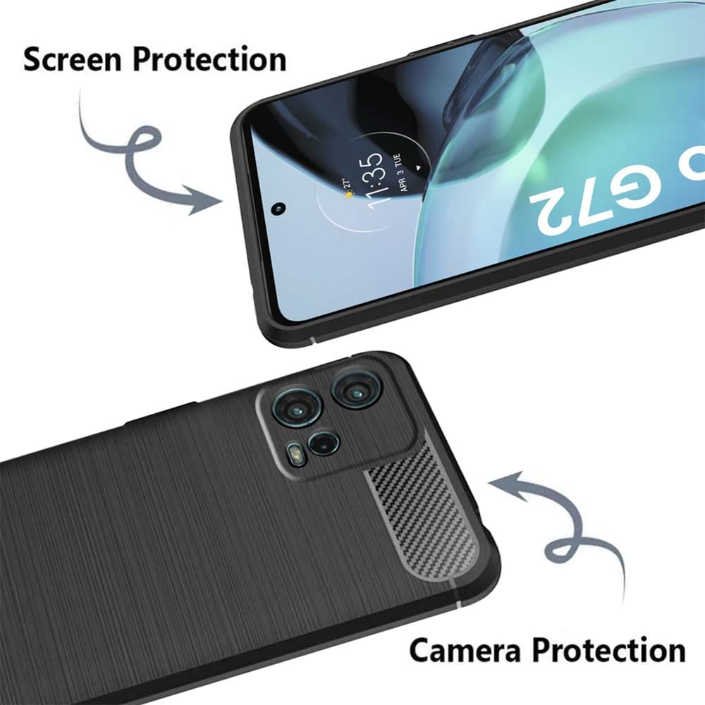 Ultra Slim Soft Rubberised Back Cover for Motorola Moto G72 | Shock Proof Brushed Carbon Fibre Texture Silicone Flexible Camera Protection Back Case – Black