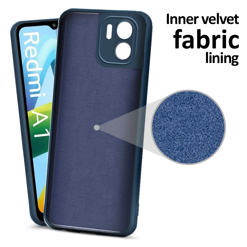 Ultra Slim, Soft Rubberised Back Cover for Redmi A1 | Redmi A2 Matte with Inner Velvet Fabric Lining (Matte Silicone | Blue)