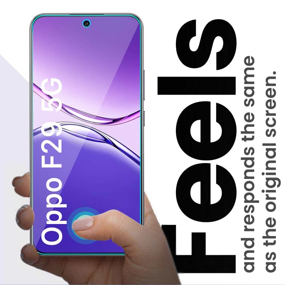 High quality replacement tempered glass for oppo f29 5g [ flexible like a screen guard, harder than a tempered glass ] pack of 2 clear. Compatible mobile spare part for repair and replacement. Durable build with precise fitting and reliable performance.