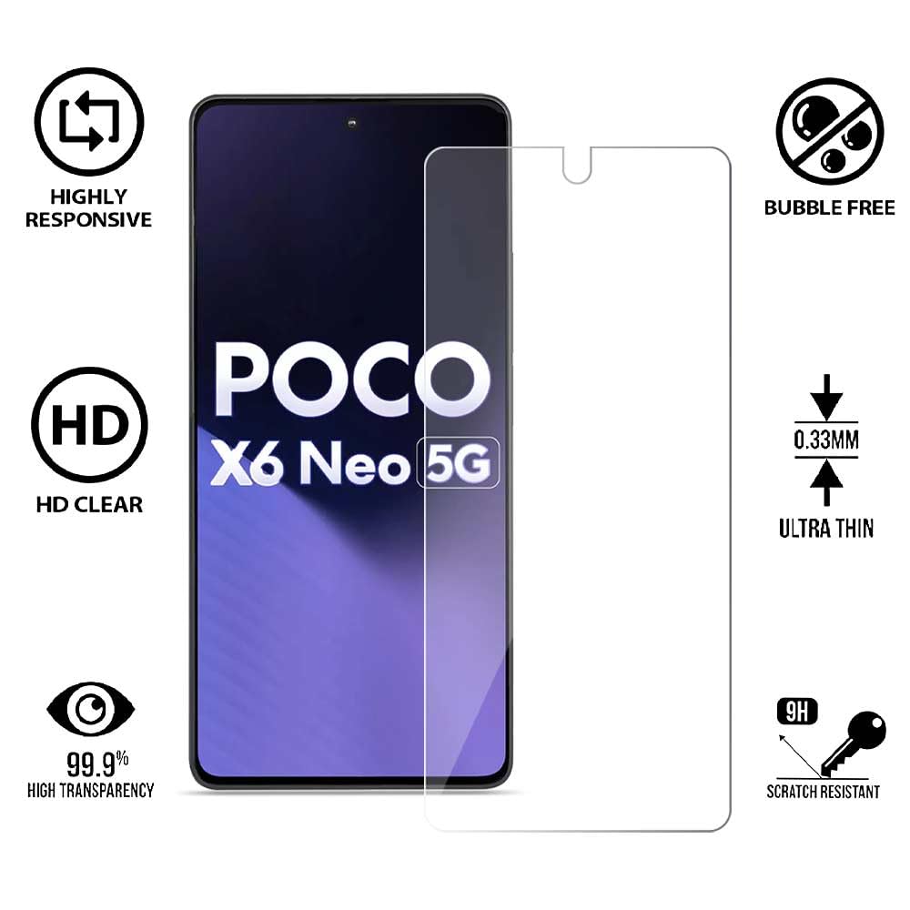 High quality replacement tempered glass for poco x6 neo 5g [ flexible like a screen guard, harder than a tempered glass ] pack of 2. Compatible mobile spare part for repair and replacement. Durable build with precise fitting and reliable performance.
