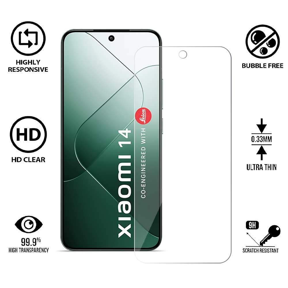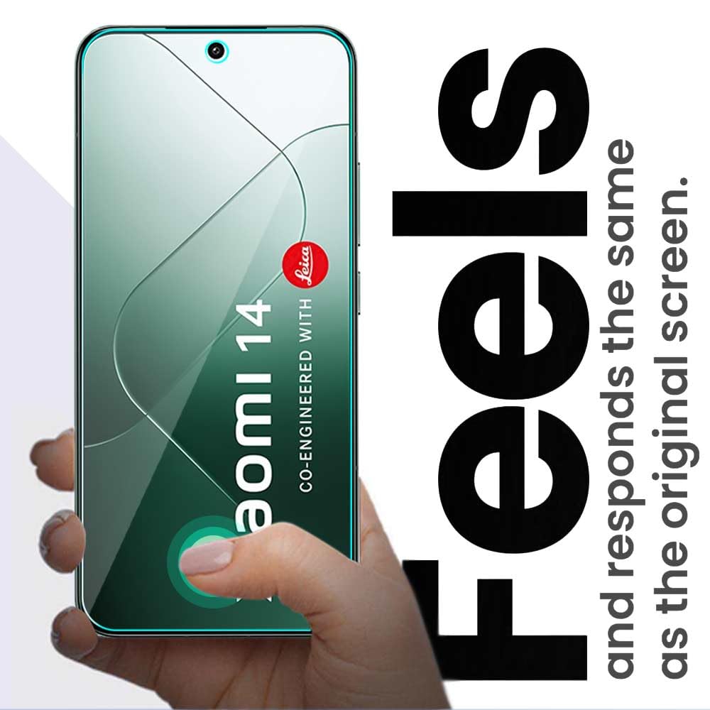 High quality replacement tempered glass for xiaomi 14 [ flexible like a screen guard, harder than a tempered glass ] pack of 2 clear. Compatible mobile spare part for repair and replacement. Durable build with precise fitting and reliable performance.