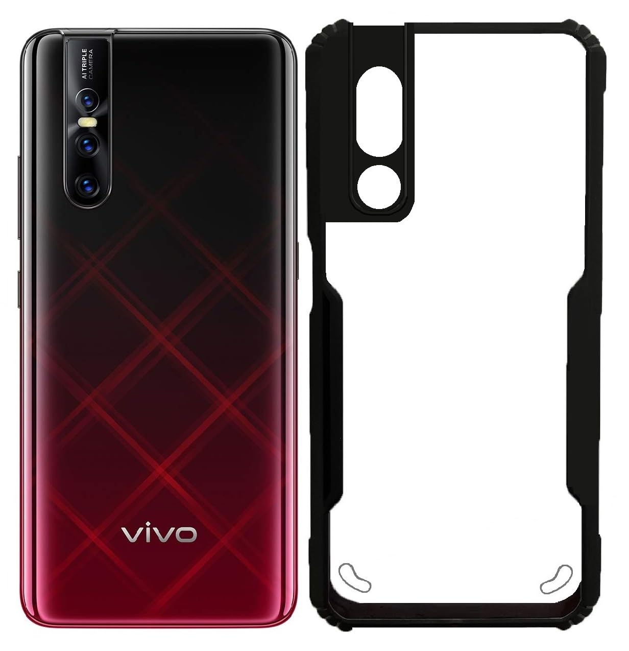 Vivo V15 Pro Shockproof Back Cover – Black & Transparent