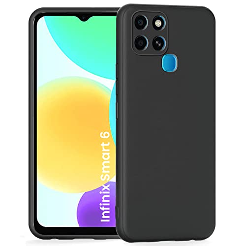 Back Cover for Infinix Smart 6 | Ultra Slim Soft Rubberised Case | Inner Velvet Fabric Lining | Matte Silicone Flexible Mobile Case | Camera Protection – Black