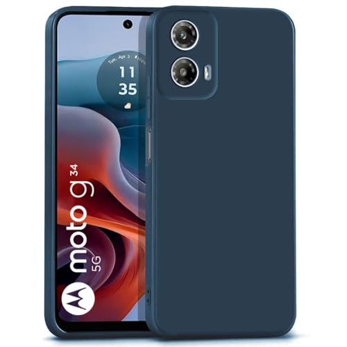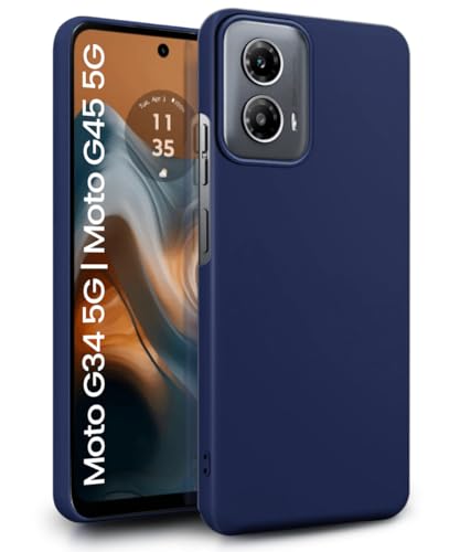 Back Cover for Motorola Moto G34 5G | Moto G45 5G | Ultra Slim Soft Rubberised Case | Inner Velvet Fabric Lining | Matte Silicone Flexible Mobile Case | Camera Protection – Blue