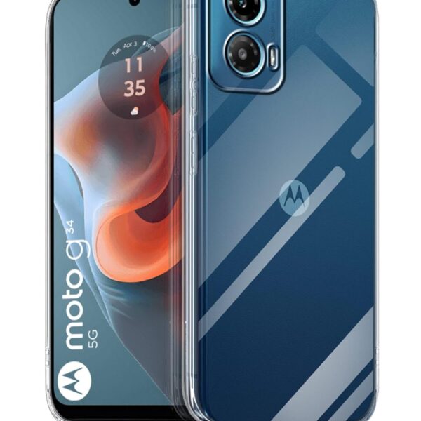 kelpuj Crystal Clear Transparent Back Case for Compatible with Motorola Moto G34 5G / G45 5G | Shockproof TPU Silicone Cover | Full Body & Camera Protection Transparent