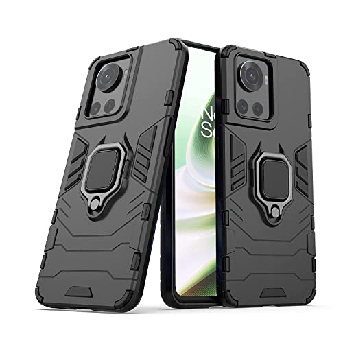 kelpuj Shock Proof Back Case Cover for 1+ OnePlus 10R 5G | 10R Prime 5G (Armor | Hybrid PC + TPU | Full Protection with Ring Holder Kickstand | Carbon Black)