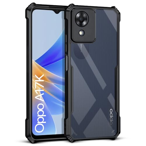 Shock Proof Clear Back Case Mobile Cover for Oppo A17K (Hard | Hybrid PC + TPU | Full Armour Device & Camera Protection | Black)
