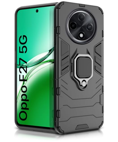 Shock Proof Back Case Mobile Cover for Oppo F27 5G | Back Cover Case (Tough Armor | Hybrid PC + TPU | Ring Holder & in-Built Kickstand | Black)