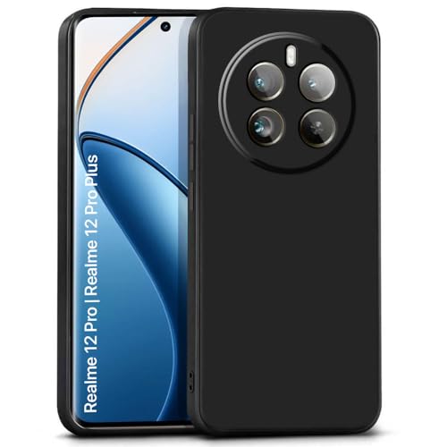 kelpuj Slim Frameless Back Cover for Realme 12 Pro 5G | Realme 12 Pro Plus 5G | P1 Pro 5G | Ultra Thin Lightweight Design & Camera Protection | Soft Matte Silicone Flexible Mobile Case (Black)