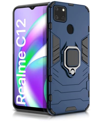 kelpuj Shock Proof Back Case Mobile Cover for Realme Narzo 30A | 20 | C12 | Back Cover Case (Tough Armor | Hybrid PC + TPU | Ring Holder & in-Built Kickstand | Blue)