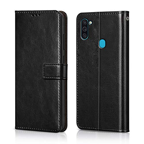 Shock Proof Flip Cover Back Case for Samsung Galaxy M11 | Magnetic Wallet Leather Case with Stand