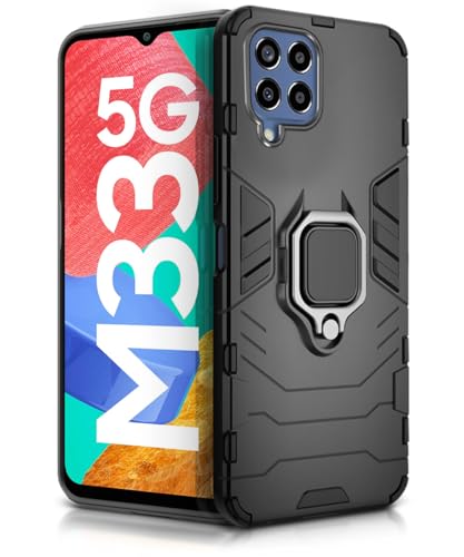 Shock Proof Back Case Mobile Cover for Samsung Galaxy M33 5G | Back Cover Case (Tough Armor | Hybrid PC + TPU | Ring Holder & in-Built Kickstand | Black)