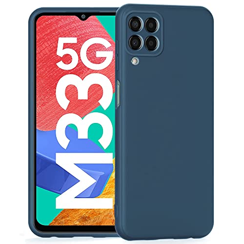 Slim Ultra Soft Rubberised Back Cover for Samsung Galaxy M33 5G | Inner Velvet Fabric Lining | Matte Silicone Flexible Camera Protection Back Case Blue