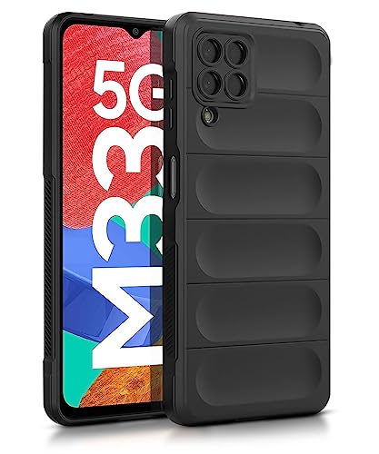 Ultimate Silicon Back Cover Case for Samsung Galaxy M33 5G | Military Grade Drop Protection Shockproof Bumper | Anti-Slip Grip | Scratch Proof Micro-Fibre Cloth Inside (Pitch Black)
