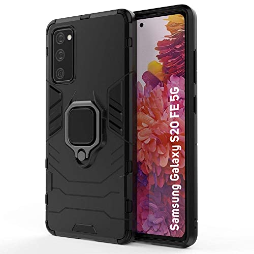 kelpuj Shock Proof Back Case Mobile Cover for Samsung Galaxy S20 FE 5G | Back Cover Case (Tough Armor | Hybrid PC + TPU | Ring Holder & in-Built Kickstand | Black)