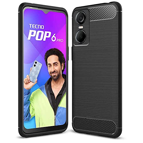 Ultra Slim Soft Rubberised Back Cover for Tecno POP 6 Pro | Shock Proof Brushed Carbon Fibre Texture Silicone Flexible Camera Protection Back Case – Black
