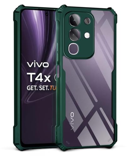Shock Proof Clear Protective Back Case for Vivo T4X 5G | IQOO Z10X 5G – AirEDGE Technology | 360 Degree Camera Protection | Transparent Hybrid Back Case Mobile Cover – Green