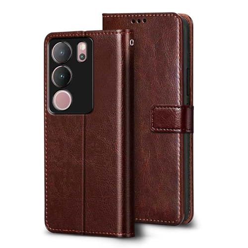 Shock Proof Flip Cover Back Case for Vivo V29 | Magnetic Wallet Leather Case with Stand