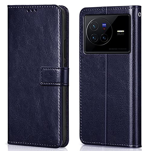 Shock Proof Flip Cover Back Case for Vivo X80 | Magnetic Wallet Leather Case with Stand