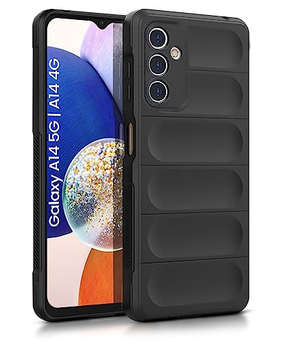 Ultimate Silicon Back Cover Case for Samsung Galaxy A14 5G | A14 4G | Military Grade Drop Protection Shockproof Bumper | Anti-Slip Grip | Scratch Proof Micro-Fibre Cloth (Pitch Black)
