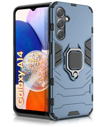 Shock Proof Back Case Mobile Cover for Samsung Galaxy A14 5G | A14 4G | Back Cover Case (Tough Armor | Hybrid PC + TPU | Ring Holder & in-Built Kickstand | Blue)