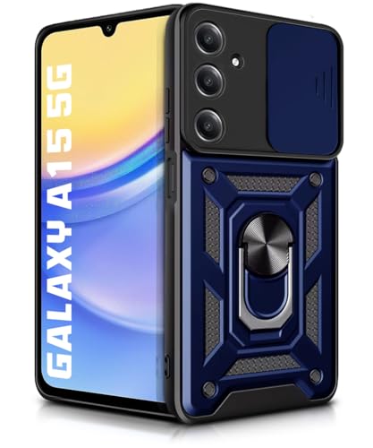 Tough Armor Bumper Mobile Back Case for Samsung Galaxy A15 5G | Sliding Camera Shield Cover | Shock Proof 360? Protection | Hybrid PC + TPU | Ring Holder with Kickstand ? Blue