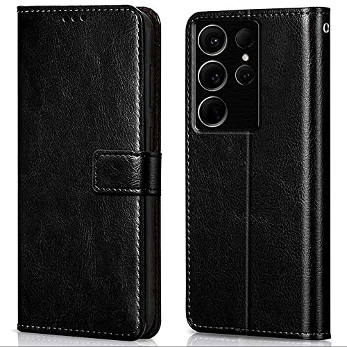 Shock Proof Flip Cover Back Case for Samsung Galaxy S23 Ultra 5G | Magnetic Wallet Leather Case with Stand