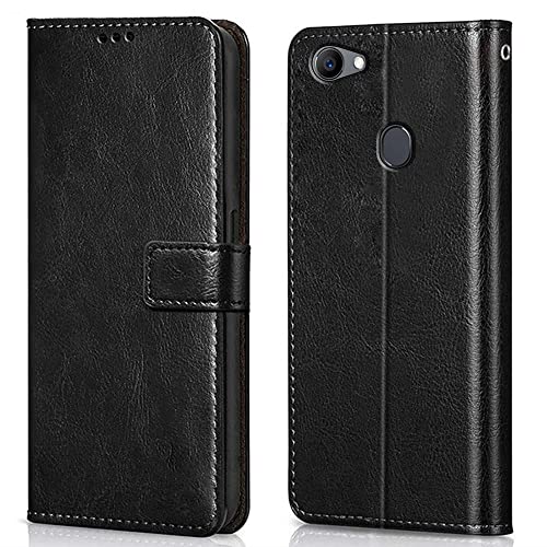Shock Proof Flip Cover Back Case for Oppo F7 | Magnetic Wallet Leather Case with Stand
