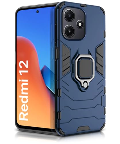 Shock Proof Back Case Mobile Cover for Mi Redmi 12 5G | Redmi 12 4G | Poco M6 Pro 5G | Back Cover Case (Tough Armor | Hybrid PC + TPU | Ring Holder & in-Built Kickstand | Blue)