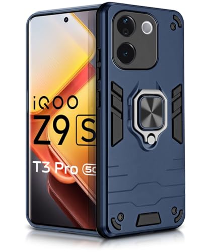 Shock Proof Back Case Mobile Cover for iQOO Z9s Pro 5G | Vivo T3 Pro 5G | Back Cover Case (Tough Armor | Hybrid PC + TPU | Ring Holder & in-Built Kickstand | Blue)