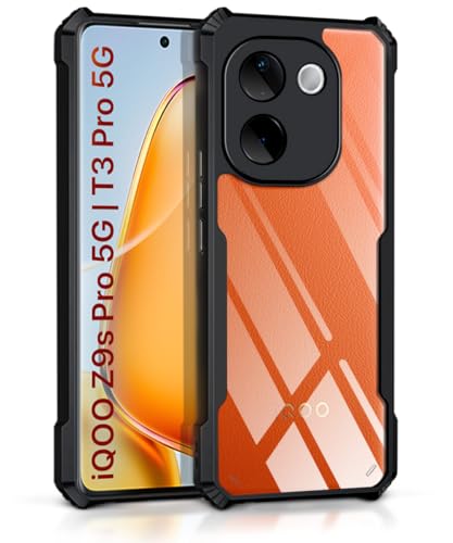 Shock Proof Clear Protective Back Case for iQOO Z9s Pro 5G | Vivo T3 Pro 5G – AirEDGE Technology | 360 Degree Camera Protection | Transparent Hybrid Back Case Mobile Cover – Black
