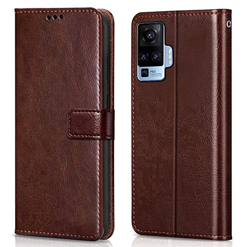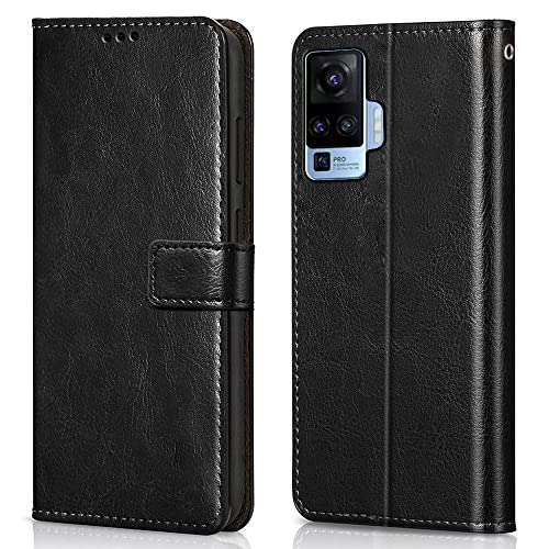 Shock Proof Flip Cover Back Case for Vivo X50 | Magnetic Wallet Leather Case with Stand
