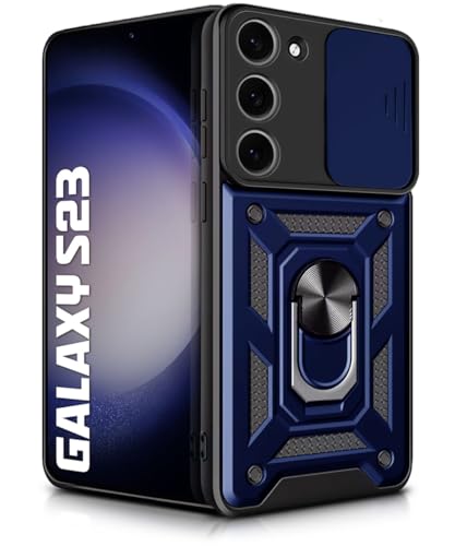 Tough Armor Bumper Mobile Back Case for Samsung Galaxy S23 5G | Sliding Camera Shield Cover | Shock Proof 360? Protection | Hybrid PC + TPU | Ring Holder with Kickstand ? Blue