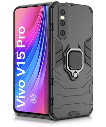 Shock Proof Back Case Mobile Cover for Vivo V15 Pro | Back Cover Case (Tough Armor | Hybrid PC + TPU | Ring Holder & in-Built Kickstand | Black)