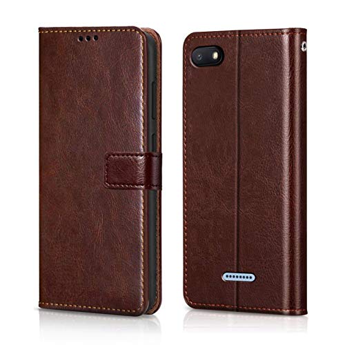 Shock Proof Flip Cover Back Case for Xiaomi Mi Redmi 6A | Magnetic Wallet Leather Case with Stand